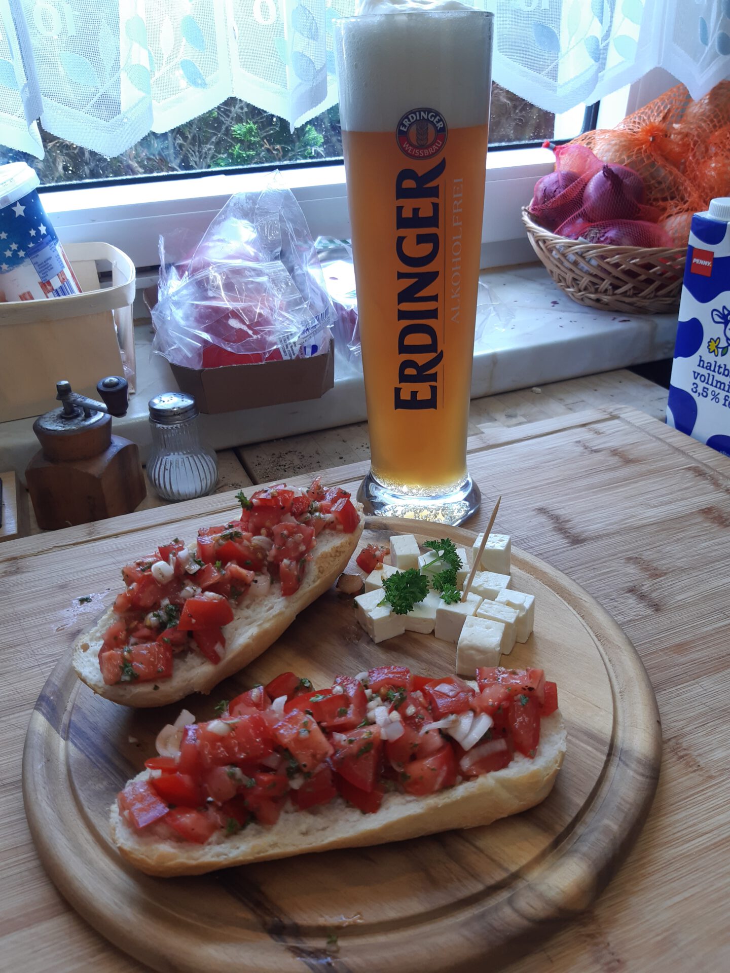 …Zwiebeln und Basilikum auf Ciabatta.