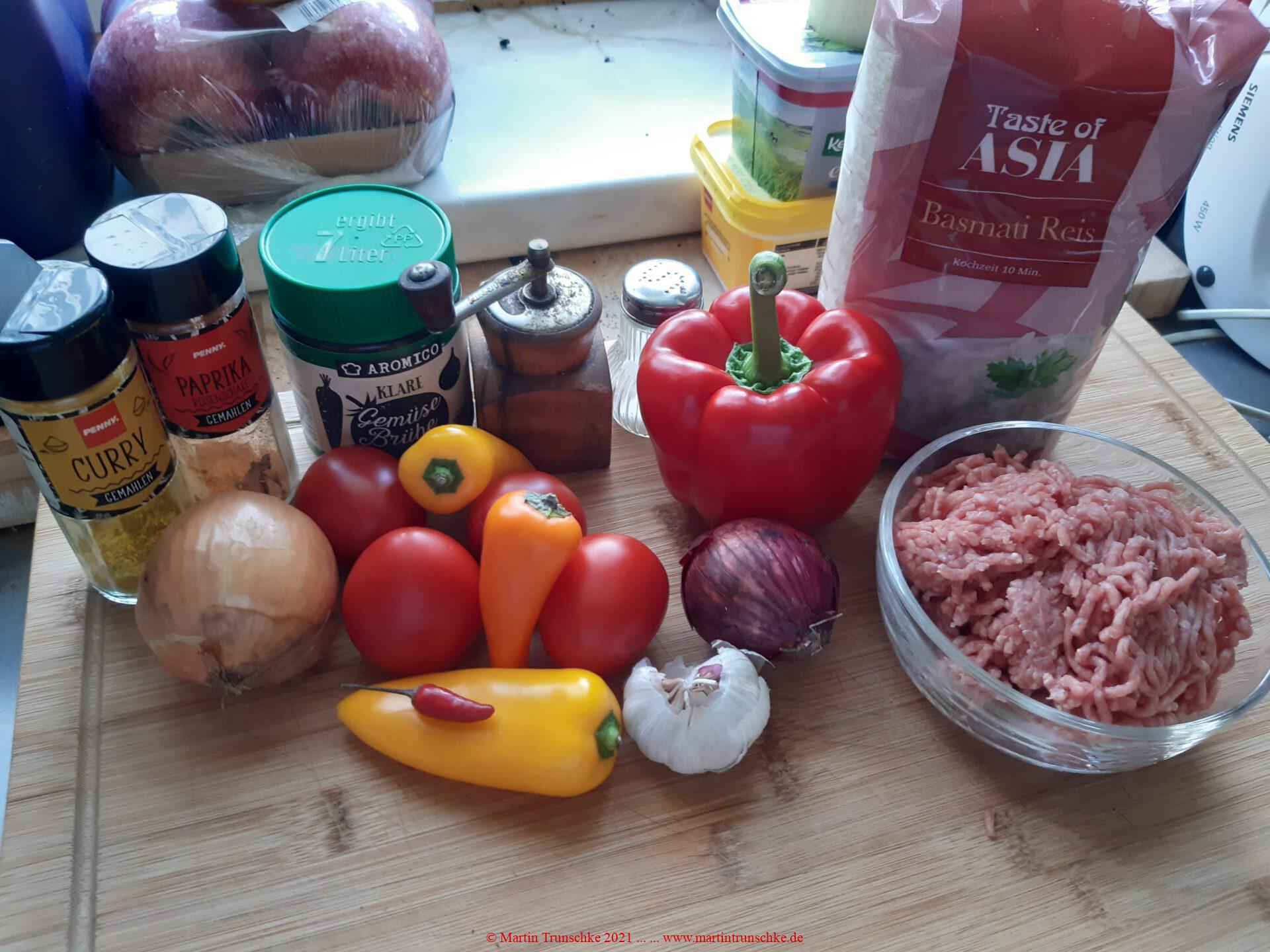 …mit Curry-Bratreis und Tomatensoße