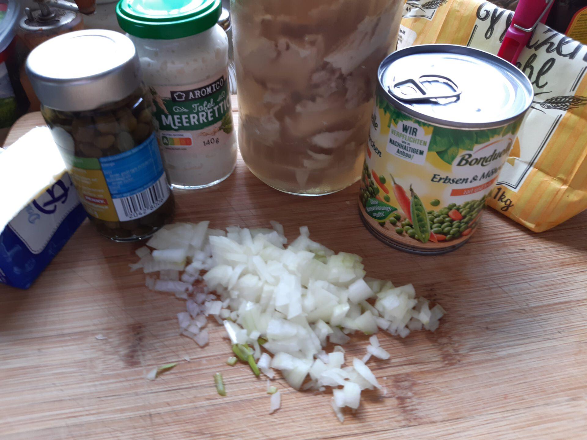- Nun die Kapern samt Saft dazu geben, Erbsen/Möhren abgießen und ebenfalls dazu geben, das Fleisch unter heben. Mit Salz, Pfeffer und Zitrone abschmecken. Wenn der Reis fertig ist alles schön anrichten und sich freuen das es allen schmeckt.