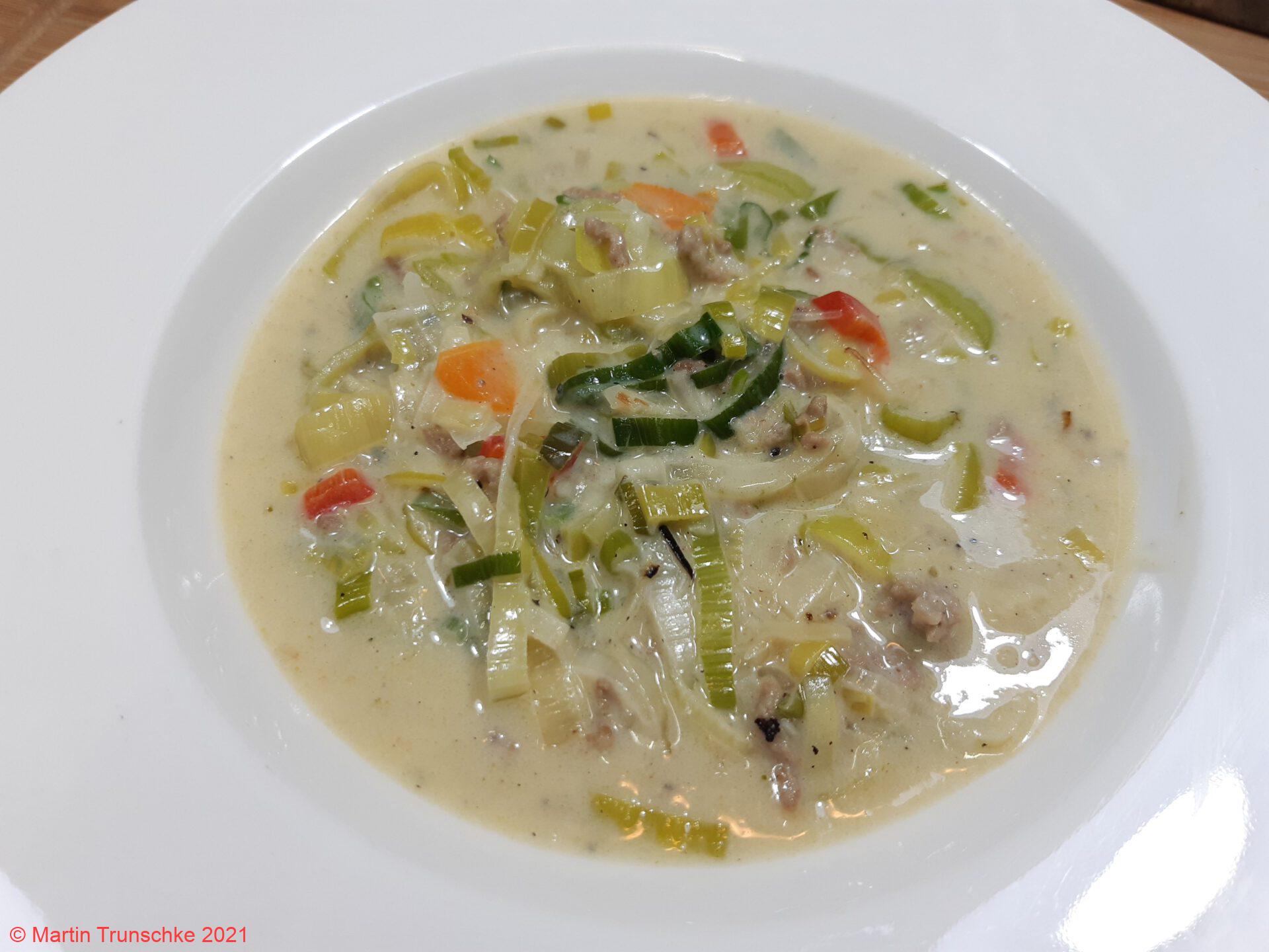 Käse / Lauch / Mett – Suppe…mit Möhrchen und Paprika als Farbtupfer |