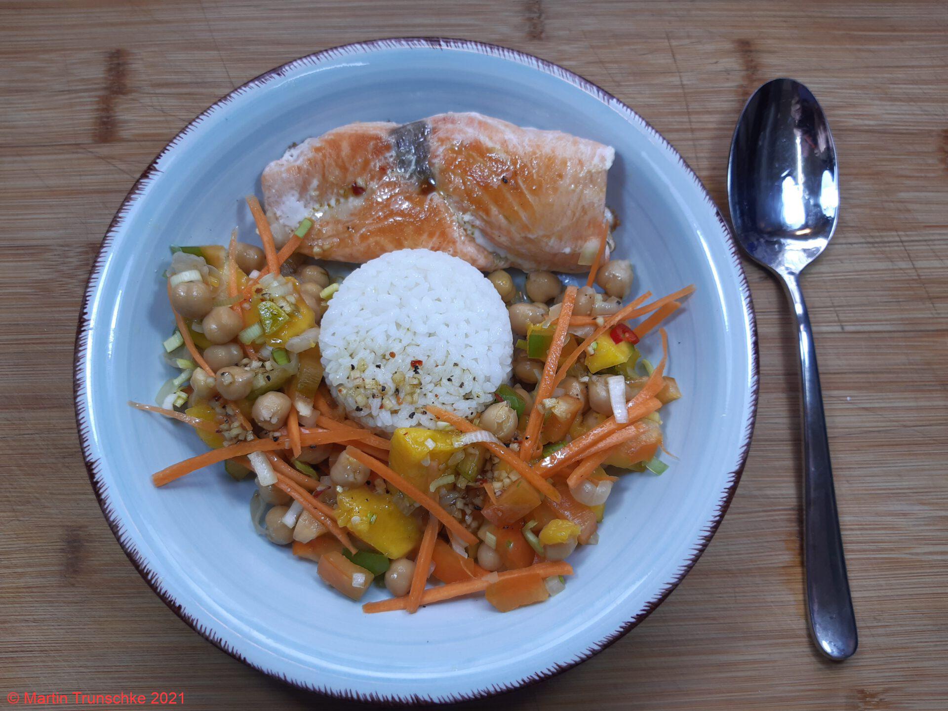 Kichererbsen-Mangosalat mit Lachs und Reis … FREESTYLE