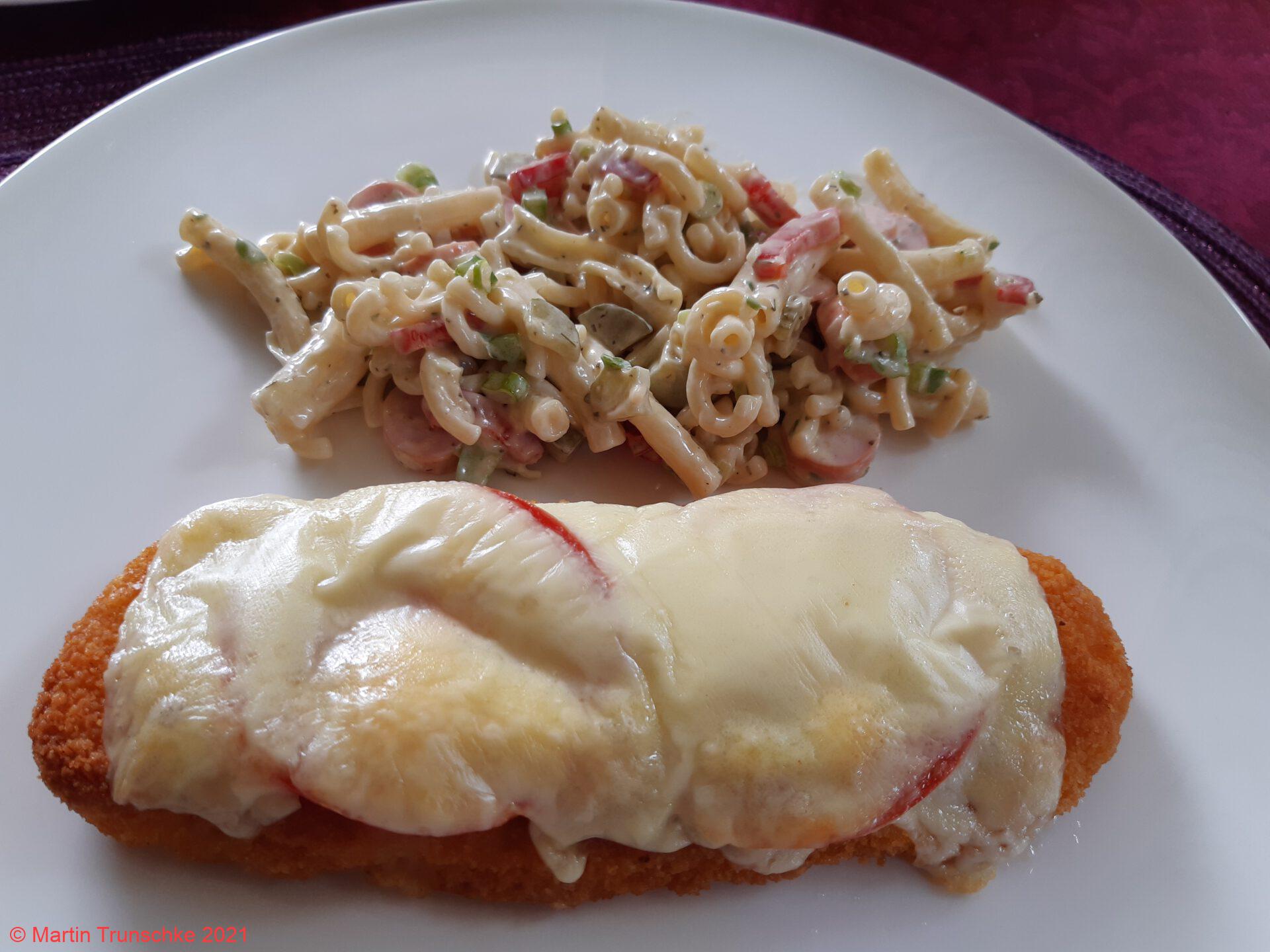 Nudelsalat und Bratfisch
