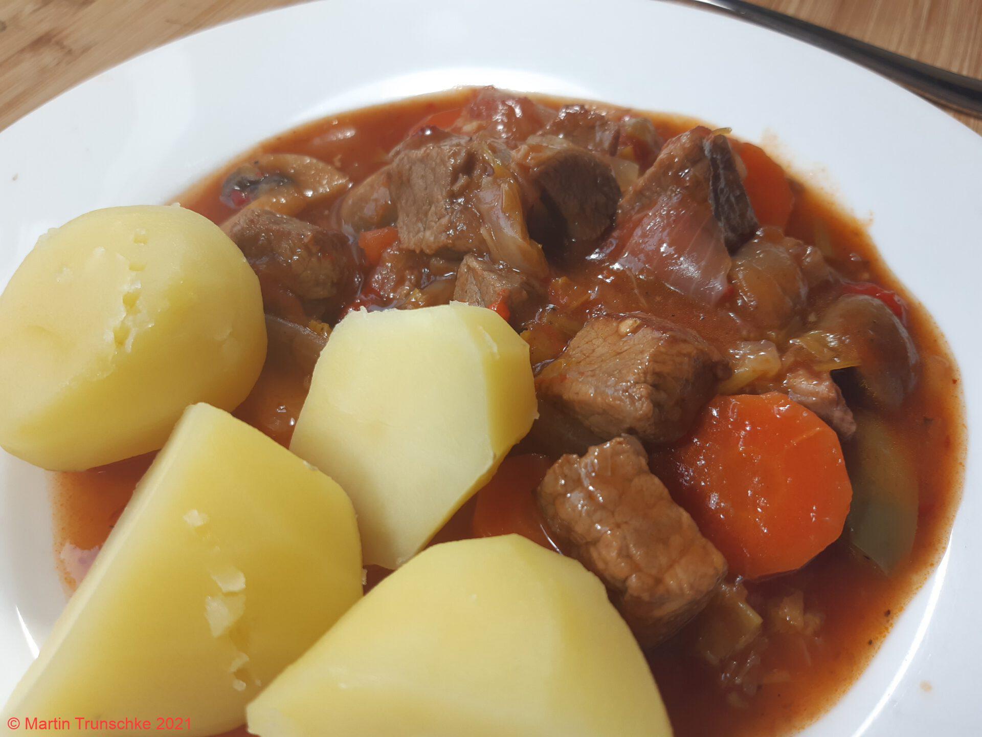Rindergulasch mit buntem Gemüse