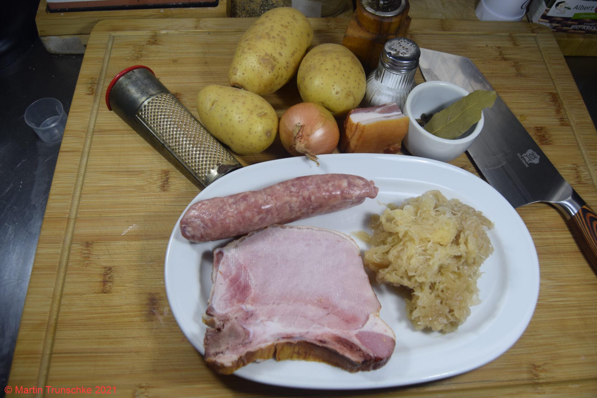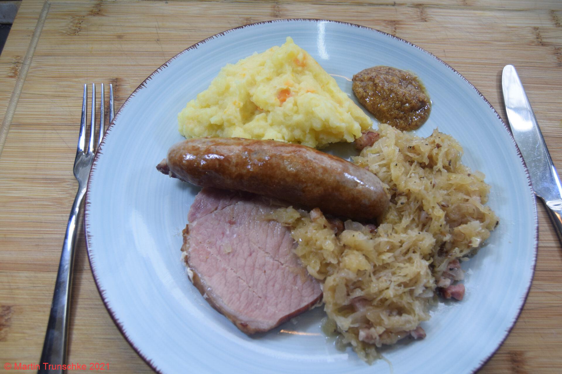 Sauerkraut mit Speck, KaPü, Bratwurst und Kasseler
