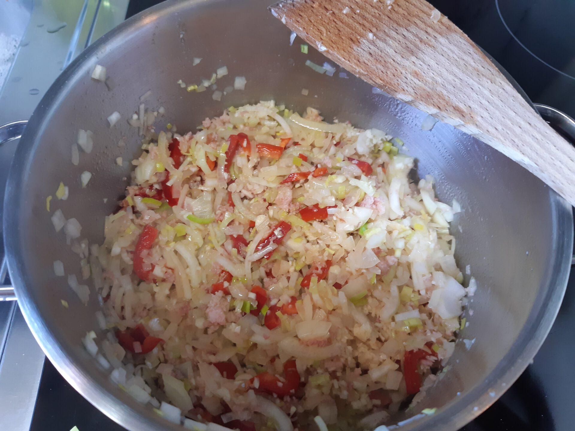- Den Bauchspeck in kleine Stücke schneiden und dann im Blender fast cremig hacken. Zwiebeln, Knobi, Paprika und Lauch fein würfeln. Nun die Speckmasse in einem hohen 28er Topf in Butterschmalz auslassen und krümelig braten. Die Zwiebeln dazu geben und auch anbraten. Sie können ruhig etwas bräunen. Nun das restliche Gemüse dazu geben und auch ca. 5 Minuten anschwitzen. Tomatenmark dazu geben und weitere 5 Minuten unter rühren anbraten. Jetzt die Pizzatomaten, Schmand und die Brühe dazu geben und kurz aufkochen lassen. Lorbeerblatt und alle anderen Gewürze nach und nach dazu geben, rühren, rühren, rühren... Zum Schluss mit dem Dicksaft und auch nochmal mit Pfeffer und Salz abschmecken. Ca. 15 Minuten köcheln lassen. Fertig. Heiß in sterile Gläser abfüllen und abkühlen lassen.
