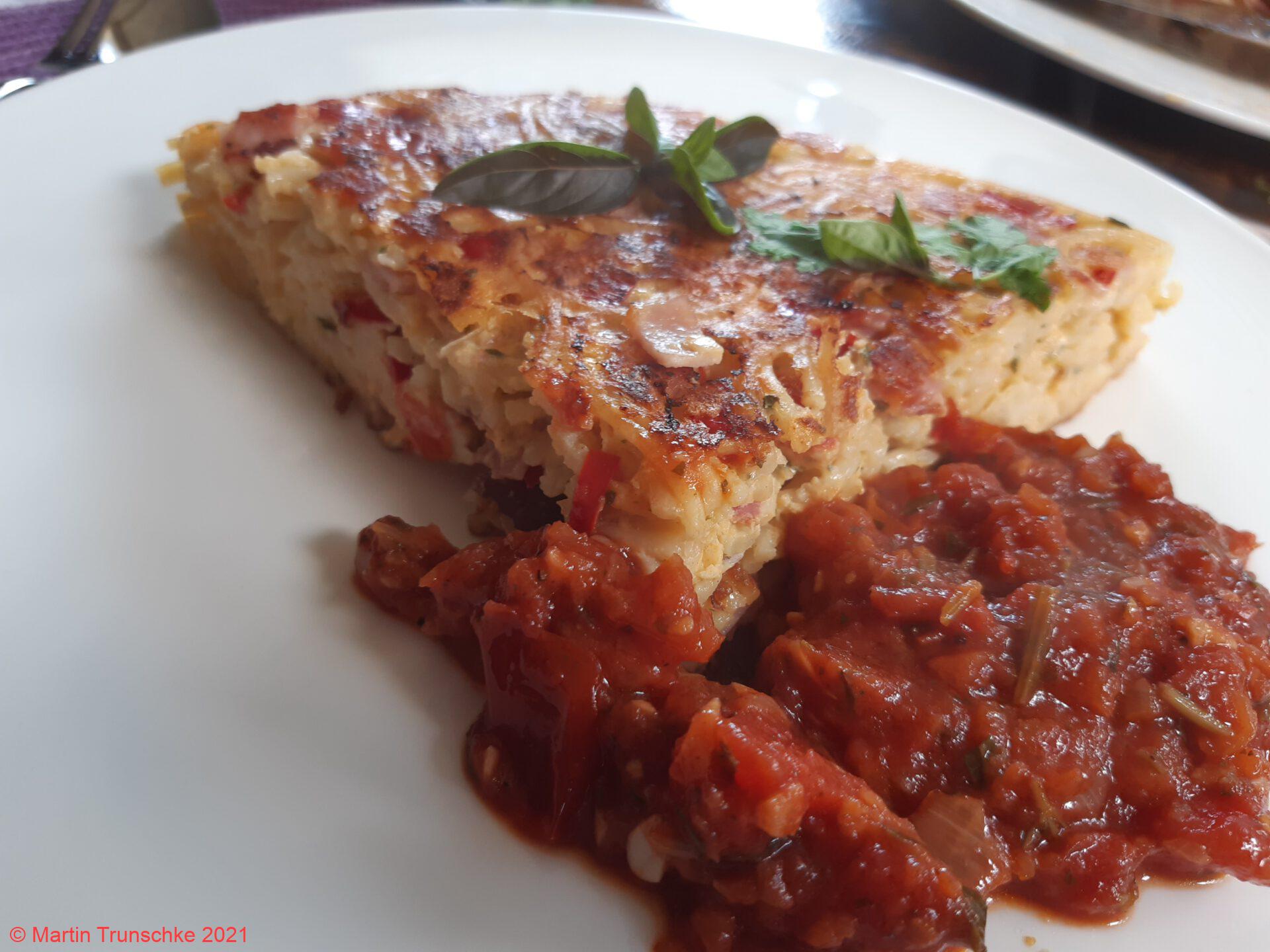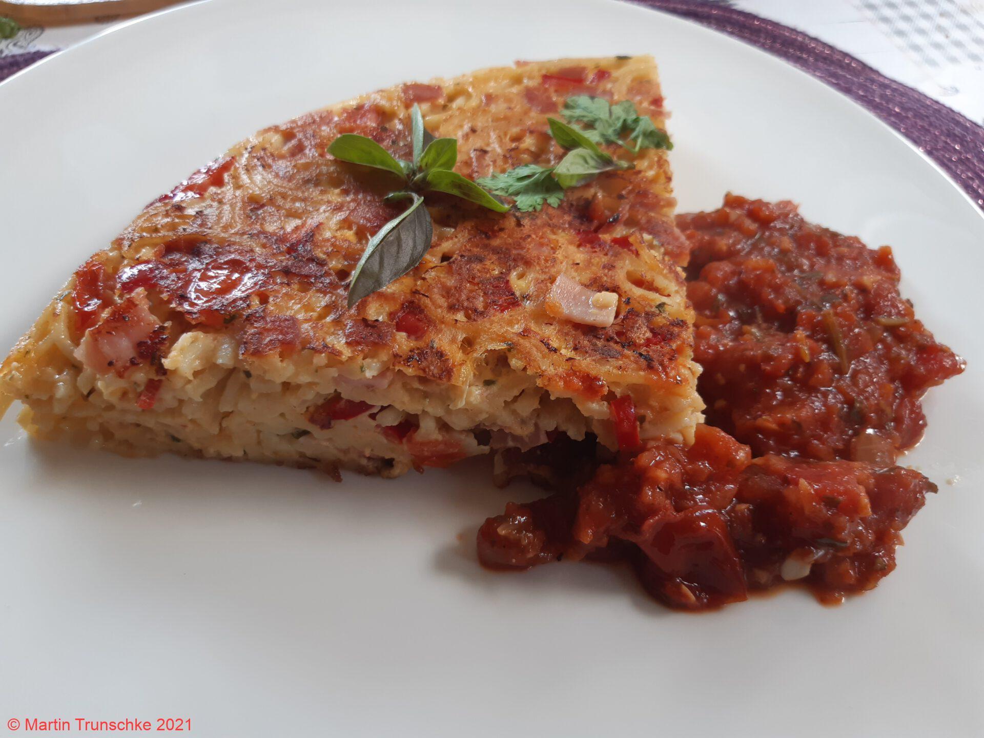 Spaghetti Omelette mit Tomatensoße