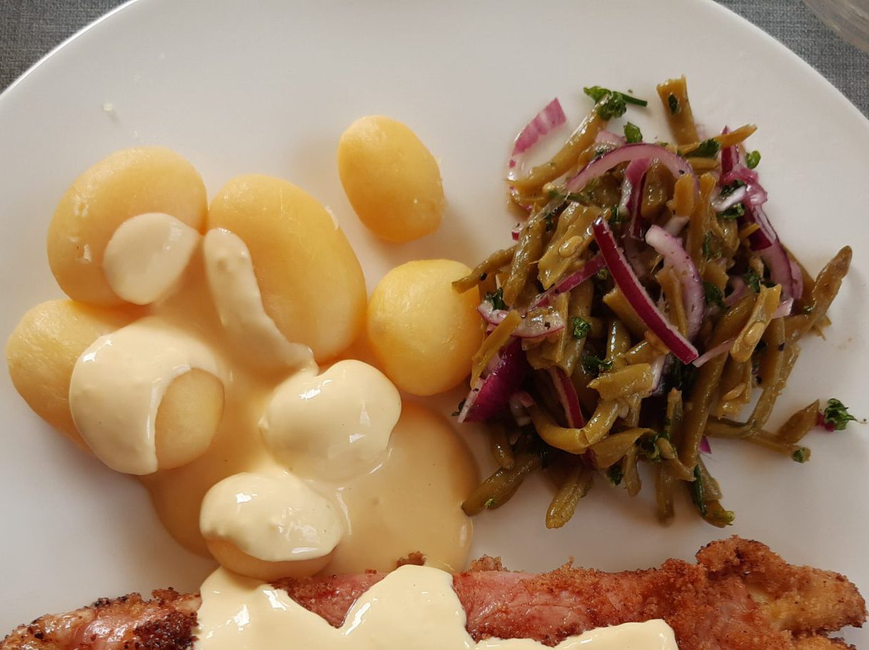 - Alles schön auf einem warmen Teller anrichten und es sich schmecken lassen. Es macht sehr satt.