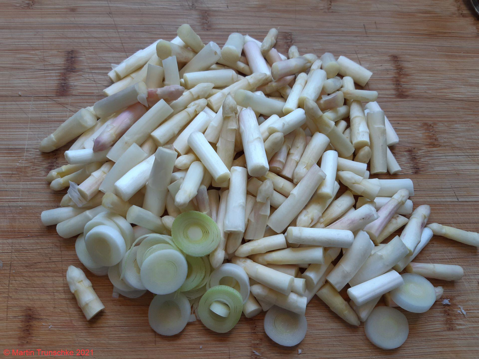 - Den Spargel abgießen, die Brühe auffangen. Die Butter schmelzen und die Zwiebelwürfel darin glasig braten. Das Mehl dazu geben und etwas anbräunen. Nach und nach mit der Brühe ablöschen, bis die gewünschte Konsistenz erreicht ist.