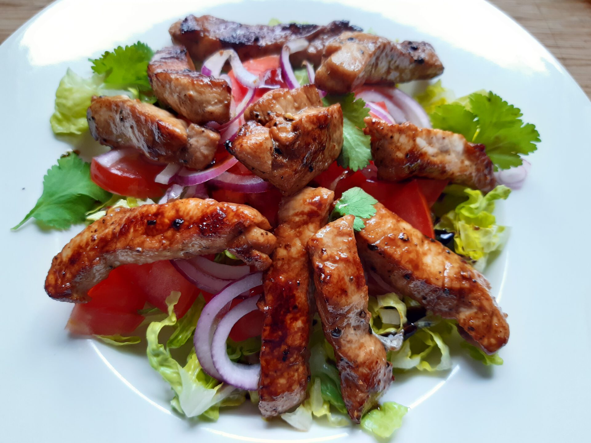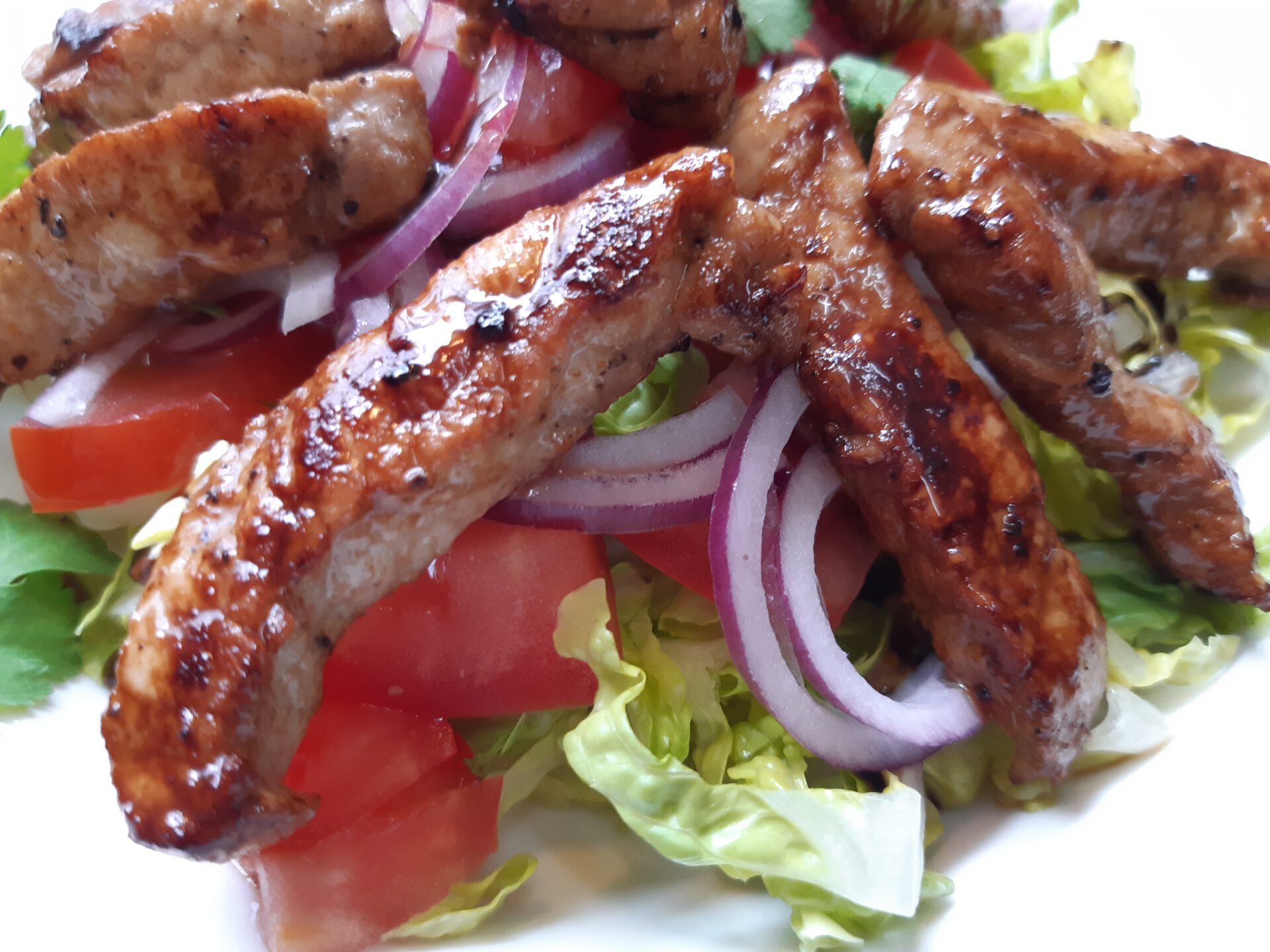 Tomaten – Romanasalat mit Schnitzelstreifen