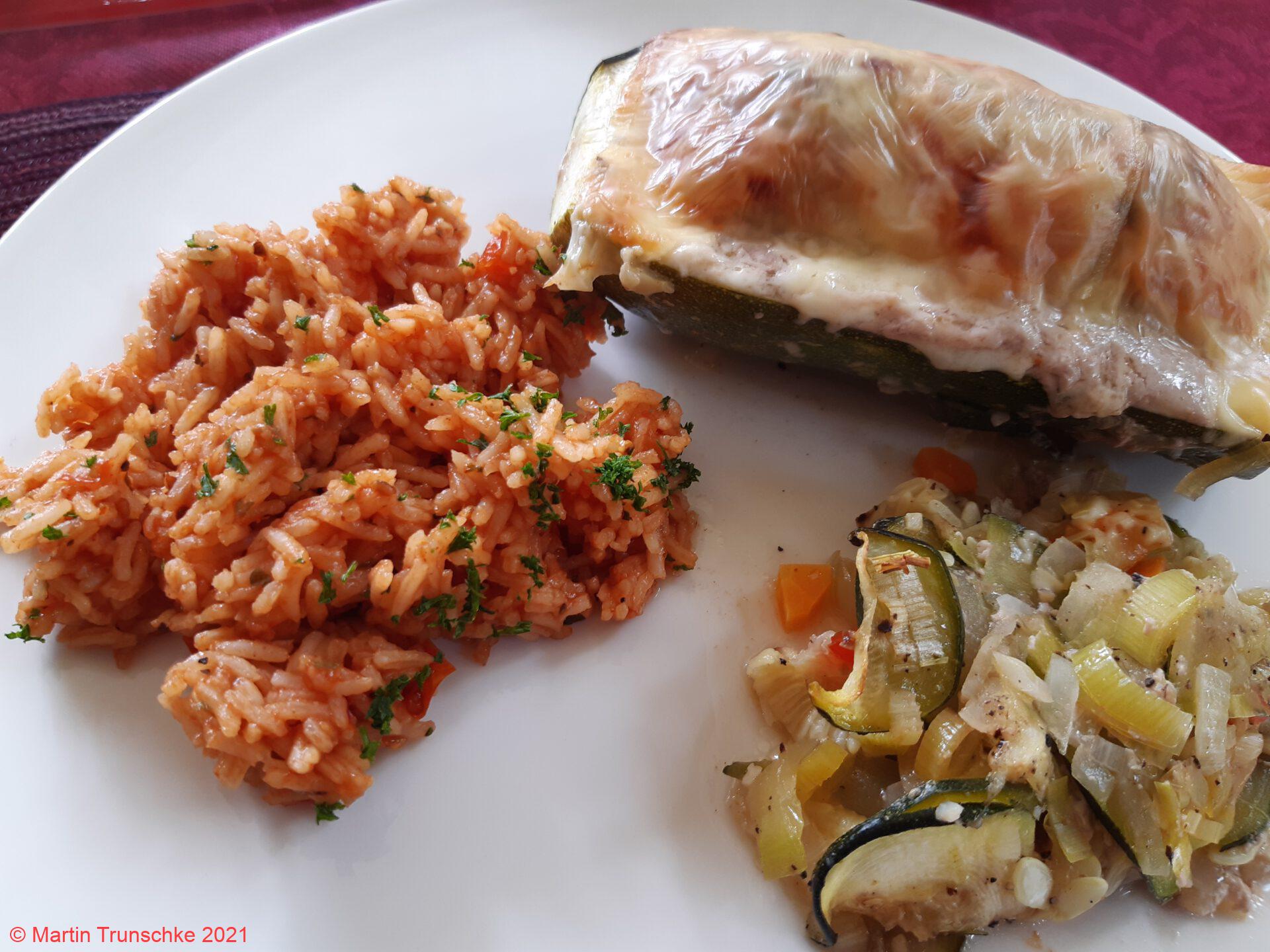 - Jetzt sollten auch die gefüllten Zucchini fertig sein.